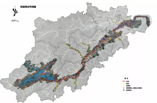 支線包括運河、湘湖、浦陽江、淥渚江、壺源溪、分水江、蘭江、壽昌江等重要支流沿岸的綠道;