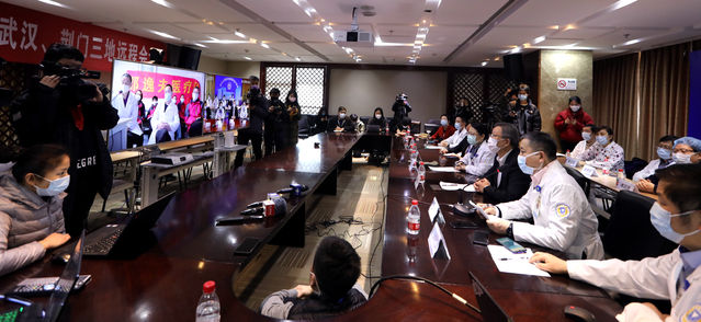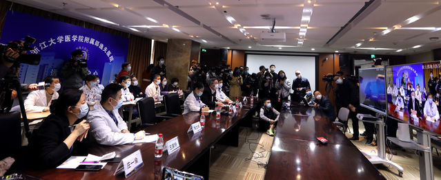 2月27日,浙江大學附屬邵逸夫醫(yī)院遠程會診中心,現(xiàn)場連湖北武漢、荊門兩地,對新冠肺炎危重病例進行三地遠程聯(lián)合會診,共同探討7個新冠肺炎危重病例的救治方案。