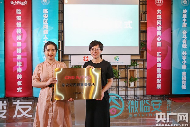 央廣網杭州7月30日消息(記者魏煒 謝夢潔)為助推臨安區農特產品產業發展,助力更多臨安農戶增收致富,7月30日,杭州市臨安區網絡人士“話小康”暨“央廣助農中國行”臨安短視頻直播基地授牌儀式在杭州臨安區舉辦,F場舉行了“央廣助農中國行”臨安短視頻直播基地落地揭牌儀式、桌面創·同心薈授牌儀式。