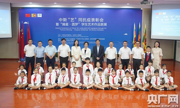 據(jù)了解,本次藝術(shù)展以“攜手抗疫”為主題,不僅加深了學(xué)生的愛(ài)國(guó)主義情懷,還促進(jìn)了中國(guó)文化的傳承,更是通過(guò)校園美育,讓“中斯”友誼更深厚。2019年年底,杭州采荷第三小學(xué)教育集團(tuán)組織采三學(xué)子參加斯里蘭卡“MANJAREE2020”國(guó)際繪畫(huà)比賽,榮獲一、二、三等獎(jiǎng)30個(gè)。今年疫情期間,學(xué)校還開(kāi)展了“抗‘疫’主題書(shū)畫(huà)展”“詩(shī)詠英雄,致敬逆行者”“聲援戰(zhàn)‘疫’”“聲動(dòng)采三”等線上抗疫主題活動(dòng)。