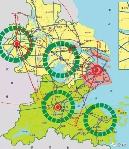根據《上海市城市總體規劃(2016-2040)》草案,劃定了包括上海、蘇州、無錫、南通、寧波、嘉興、舟山在內的"1+6"上海大都市圈,提出將上海建設成為卓越的全球城市,國際經濟、金融、貿易、航運、科技創新中心和文化大都市。