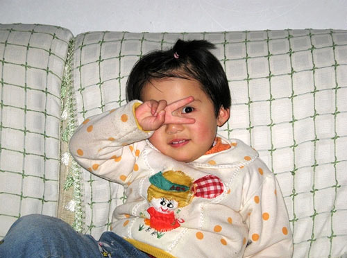 我的孩子小名叫貝貝,現(xiàn)在已經(jīng)四歲了,她有一雙明亮的大眼睛,兩個小酒窩,是個漂亮的小姑娘,很可愛!是我的心肝寶寶。