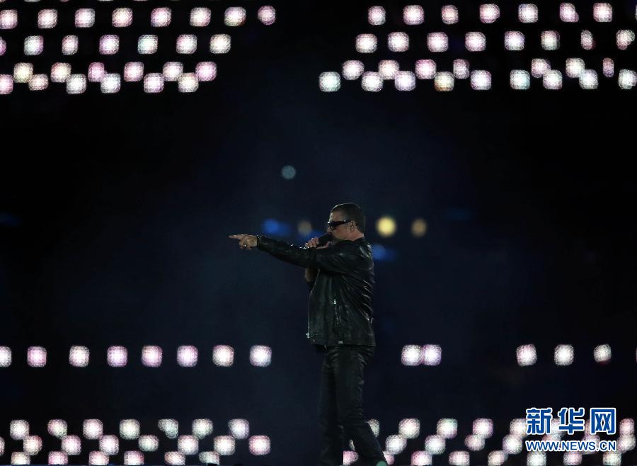 2012年8月12日,第三十屆夏季奧林匹克運(yùn)動(dòng)會(huì)閉幕式在倫敦奧運(yùn)會(huì)主體育場(chǎng)舉行。圖為喬治·麥克在閉幕式上演唱。 新華社記者 沈伯韓 攝