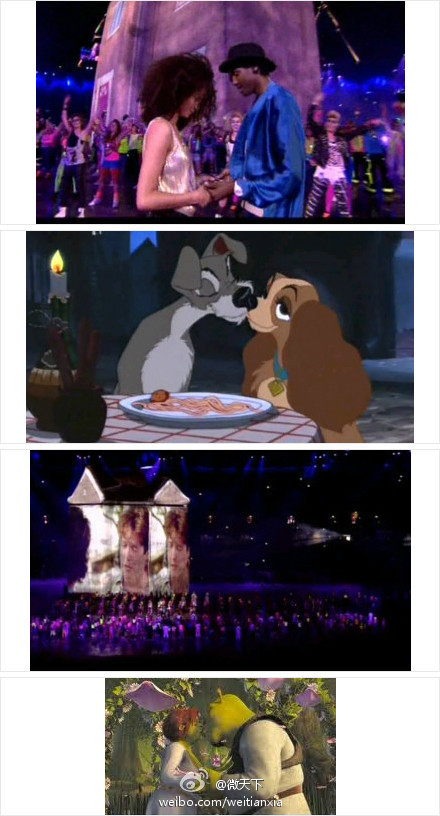 她,頭發蓬松,手如柔荑,膚如凝脂;他,頭戴禮帽,儀表堂堂,愛意滿倉;兩人緩緩從人群中走向對方,嬌羞,強忍,擁吻,融化。大屏幕適時放出影史經典吻戲,從休-格蘭特到史萊克,從一見鐘情到厚積薄發;若我知如何舍棄你,那該多好。這么確切的愛,一生只有一次。