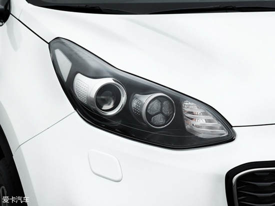KX5首次采用了起亞家族最具代表性的“虎嘯式”前臉,同時前大燈夸張地向后延伸,柳葉形大燈內部采用全新的布局,近光燈采用了LED光源,讓KX5在外觀上更吸引年輕一代的消費者。霧燈位置的LED日間行車燈,采用了4顆方形LED小燈組成,造型別致,功能性上也許會兼顧日間行車燈和霧燈兩種功能。