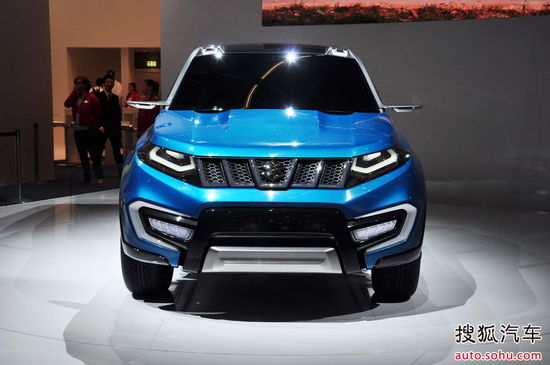 鈴木iV-4概念車的前臉設計極具科技感,前進氣格柵采用全新的家族式設計,車頂加入探照燈。此外,這輛概念車還有著不小的離地間隙和一具和路虎極光Evoque相似的設計外形,棱角十足的同時也有力量感,位于A柱下方的車側轉向燈是車身側面的一大亮點。