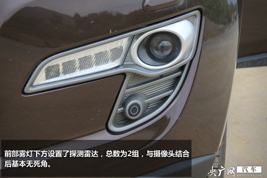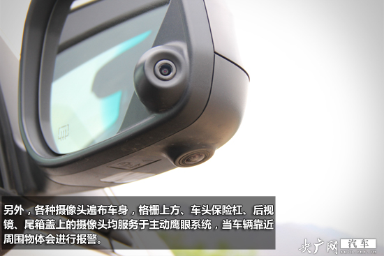 另外,各種攝像頭遍布車身,格柵上方、車頭保險(xiǎn)杠、后視鏡、尾箱蓋上的攝像頭均服務(wù)于主動(dòng)鷹眼系統(tǒng),當(dāng)車輛靠近周圍物體會(huì)進(jìn)行報(bào)警。前部霧燈下方設(shè)置了探測(cè)雷達(dá),總數(shù)為2組,與攝像頭結(jié)合后基本無死角。