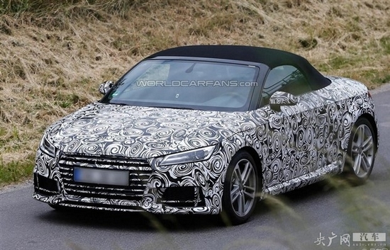 外觀方面,奧迪新一代TT Roadster整體造型與現款TT保持一致,該車前臉采用一體化格柵設計。從曝光的諜照來看,新一代TT Roadster沿用了奧迪家族傳統的軟頂敞篷設計,車內防滾架加有銀色涂裝。