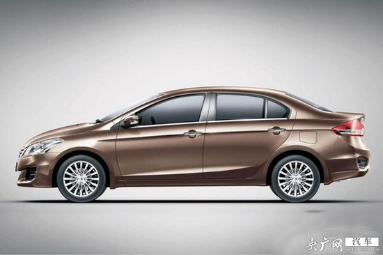 新車外觀采用了鈴木Alivio概念車的設計,前臉的進氣格柵采用了分層式設計,上進氣格柵采用了中間鏤空的四幅橫向鍍鉻條進行裝飾。車身側面腰線上揚,并搭配多幅窄條鋁合金輪轂。后備箱尾上揚,更加運動。新車尺寸分別為4545/1730/1475mm,軸距為2650mm。