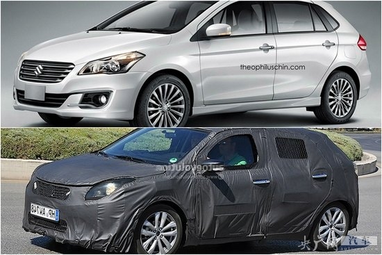 目前,海外媒體繪制了一組鈴木ALIVIO兩廂版車型的效果。同時通過對比我們發現,此前外媒曝光的一款鈴木全新兩廂測試車與ALIVIO兩廂版很相似。據悉,新車有望于2016年初正式上市。