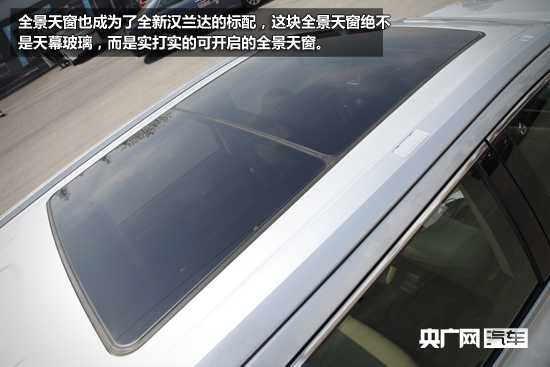 全景天窗也成為了全新漢蘭達的標配,這塊全景天窗絕不是天幕玻璃,而是實打實的可開啟的全景天窗。