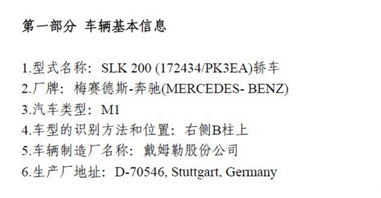 新款奔馳SLK環保目錄信息 搭2.0T+9AT