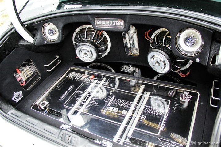 做內(nèi)飾的時(shí)候第一件事就是將車內(nèi)拆空。首先將車內(nèi)原有的隔音全部鏟掉,換成了安博士的藍(lán)鉆系列。音響器材由古董級的老款阿爾派9861主機(jī)走光纖配合另一個(gè)老古董阿爾派701音頻處理器、德國零點(diǎn)功放和喇叭、俄羅斯切爾諾夫線材配合組成。