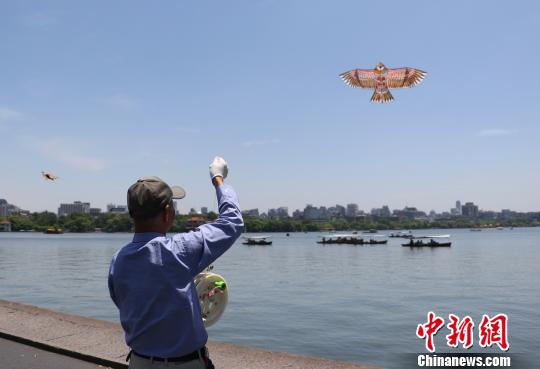 圖為:在杭州西湖邊放風箏的市民。 王剛 攝