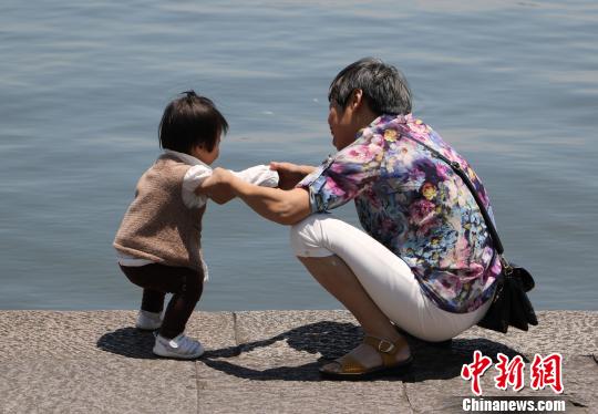 圖為:浙江杭州老人怡兒弄孫。 王剛 攝