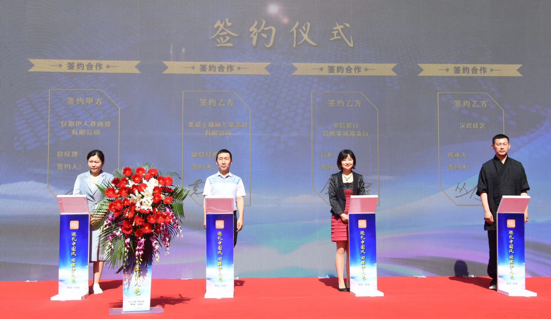 在活動(dòng)現(xiàn)場(chǎng),包括北京《瑞麗》雜志社有限公司、金龍魚(yú)合肥總代、迎駕集團(tuán)合肥運(yùn)營(yíng)商、百利食品等14家企業(yè)和非遺文化傳承人與選品中心簽約。