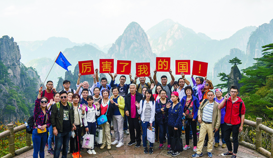 ▲ 10月1日,黃山風景區正式拉開今年“十一”黃金周大幕。圖為中外游客在景區游玩、拍照。潘成攝