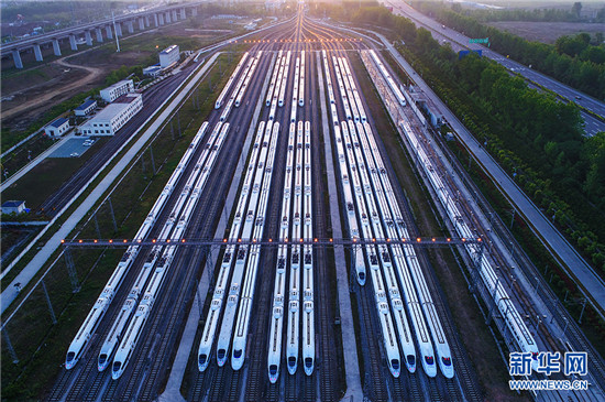 航拍鏡頭下的動車檢修所。新華網(wǎng) 陳揚 攝