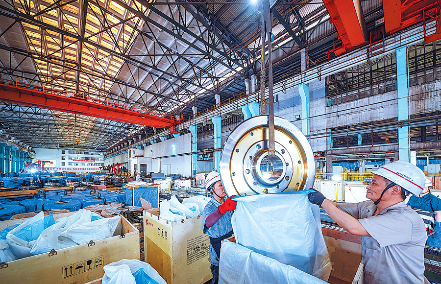 6月4日下午,馬鋼輪軸事業部職工在對出口法國阿爾斯通公司的36件AT840G高鐵車輪進行包裝發運。馬鋼加強與“一帶一路”沿線國家和地區合作,今年1月至5月,已與世界70多個國家和地區發展了雙邊貿易。通訊員 張明偉 攝