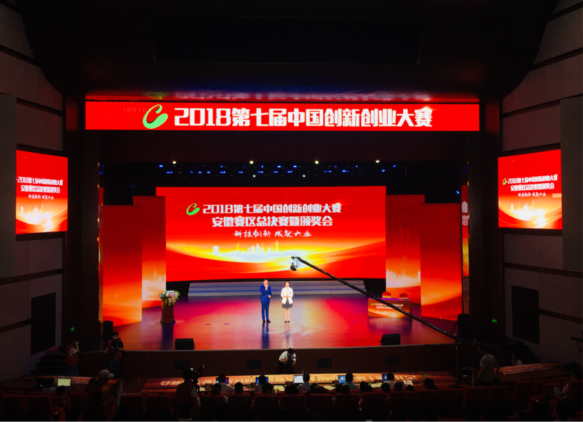 2018年8月21日,第七屆中國創新創業大賽安徽賽區總決賽在瑤海大劇院正式拉開帷幕,30家成長企業在此進行巔峰決戰。選手們展示項目、迸發創意,評委們品評指點、妙語連珠,觀眾們緊張觀戰、喝彩助威。