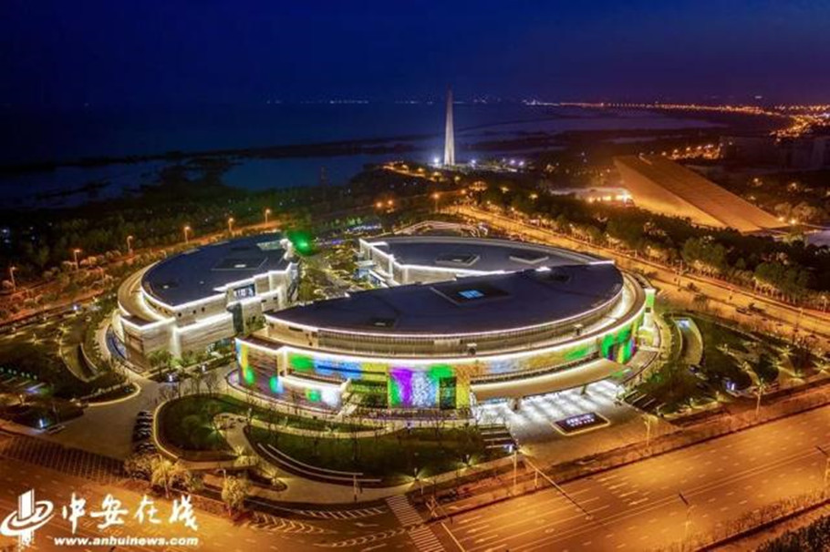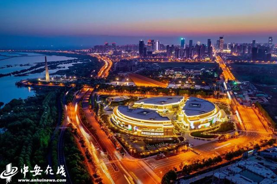 4月17日,隨著安徽創新館開館進入倒計時,場館周邊的照明設備開足馬力,開啟“夜景模式”,點亮旖旎的巢湖湖畔。