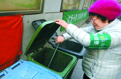 3日一大早,西城區大乘巷社區的垃圾分類引導員開始例行檢查分類情況。春節期間,大乘巷社區專門組織煙花炮竹垃圾分類志愿者,引導居民正確處理易燃物。記者 戴冰攝