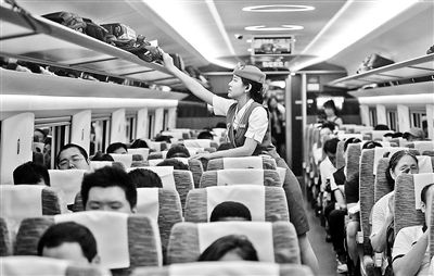 “復興號”在京津城際線上開行的對數最多,上線后會給這條線路帶來哪些變化呢?北京南站新聞發言人梁兆鈺表示,“復興號”上線后雖然速度、票價和現有的“和諧號”一致,但運力增加了!皬团d號”定員為576人,較“和諧號”增加20人,京津城際每天增加運力780人。值得注意的是“復興號”上取消了特等座,也就是旅客常說的“觀光艙”,改為商務座,數量由16個較少為10個,一等座的座位數也減少了。梁兆鈺表示,雖然全車總體增加了20個座席,但通過特等座和一等座的減少,使二等座的數量實際增加了48個,這對于往返京津兩地的通勤、旅游者來說是個好消息。