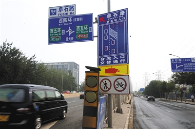 石景山交通支隊(duì)交通科科長(zhǎng)張馳告訴記者,石景山交通支隊(duì)在實(shí)地調(diào)研后發(fā)現(xiàn),“高峰時(shí)段等候進(jìn)主路車輛的隊(duì)尾甚至?xí)诺綏钋f東橋橋下,綿延近1.8公里,而在輔路內(nèi)直行的車輛卻比較少,屬典型的合流入口。”在綜合國(guó)內(nèi)外交通管理經(jīng)驗(yàn)后認(rèn)為,在該區(qū)域內(nèi),可通過(guò)“拉鏈?zhǔn)健苯惶嫱ㄐ蟹绞剑岣呗范蔚耐ㄐ心芰Α4送猓扇 袄準(zhǔn)健苯惶娣判泄ぷ鞣ㄒ簿哂忻鞔_的法律依據(jù)。根據(jù)《道路交通安全法實(shí)施條例》第五十三條第三款規(guī)定:機(jī)動(dòng)車在車道減少的路口、路段,遇有前方機(jī)動(dòng)車停車排隊(duì)等候或者緩慢行駛的,應(yīng)當(dāng)每車道一輛依次交替駛?cè)胲嚨罍p少后的路口、路段。