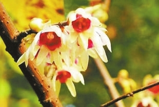 特色:這些蠟梅花色有淡黃、金黃之分,還有紫紅斑紋點綴花心,蕙芳園開門時間為9時至16時,蠟梅后方的四合院還展覽著蘭花。