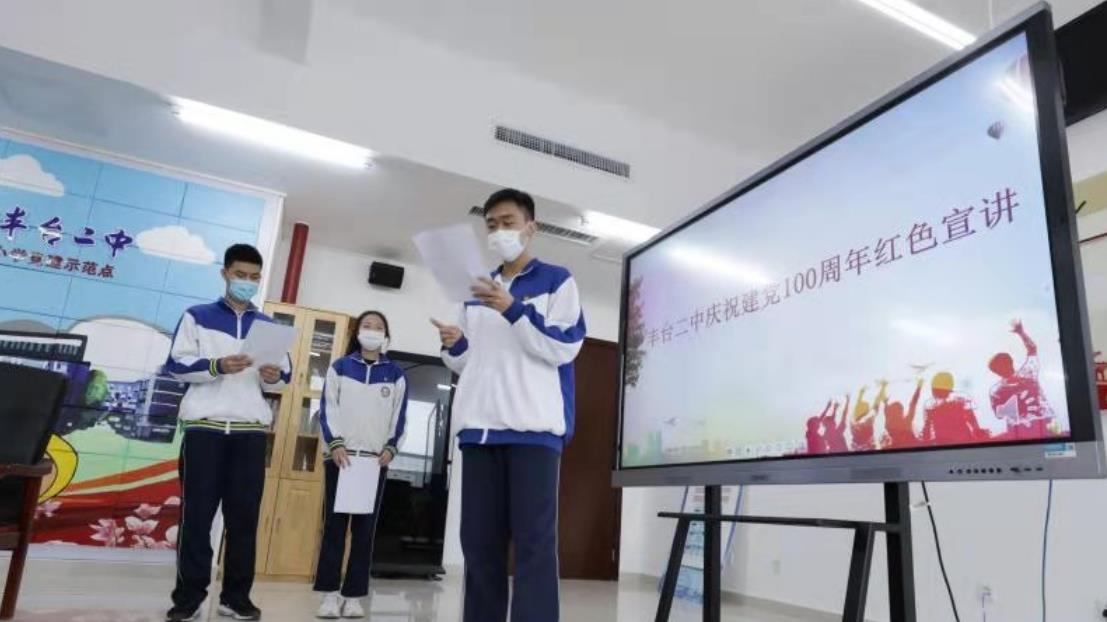 (圖為豐臺二中學(xué)生進行建黨百年紅色宣講演練 豐臺區(qū)宣傳部供圖 央廣網(wǎng)發(fā))
