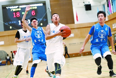 18日上午,東城區(qū)第二屆“廣中勵(lì)志杯”中小學(xué)籃球聯(lián)賽在廣渠門中學(xué)開幕。為期一周的中小學(xué)聯(lián)盟籃球聯(lián)賽共吸引來自18所中小學(xué)、25個(gè)校園球隊(duì)的370多名學(xué)生球員積極參與。 本報(bào)記者 孫戉攝
