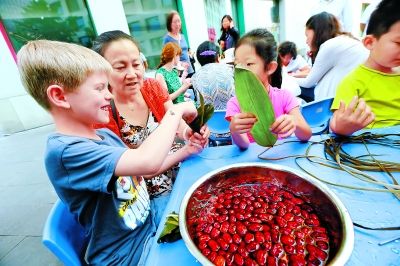 日前,東直門街道聯合香北社區共同在萬國城北區戶外廣場舉辦“粽享童年”兒童嘉年華活動。中外兒童在老師們的帶領下與社區居民一起動手包粽子,體驗獨具特色的中國傳統民俗文化。本報記者 孫戉攝