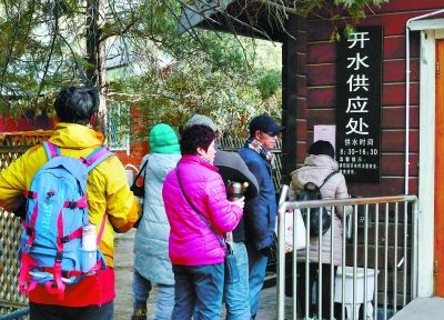 嚴寒季節,紫竹院公園以人為本,為前來游園的游客免費提供開水,讓游客在寒冷的天氣里,感受到如春的暖意。本報特約攝影 李文明