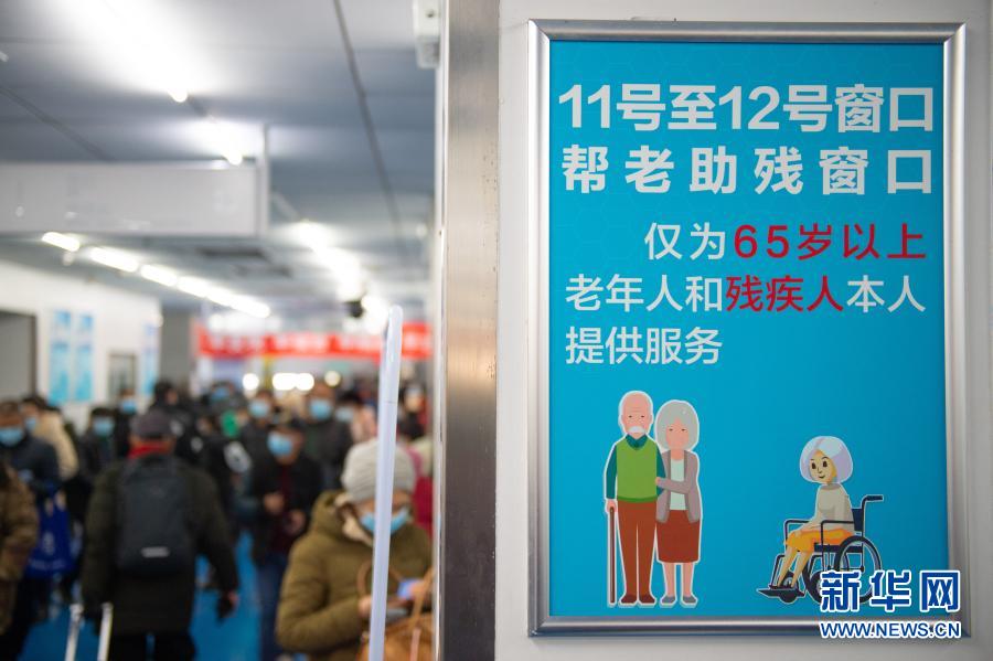 首都醫科大學附屬宣武醫院門診大廳里立起了“幫老助殘窗口”引導牌(12月10日攝)。