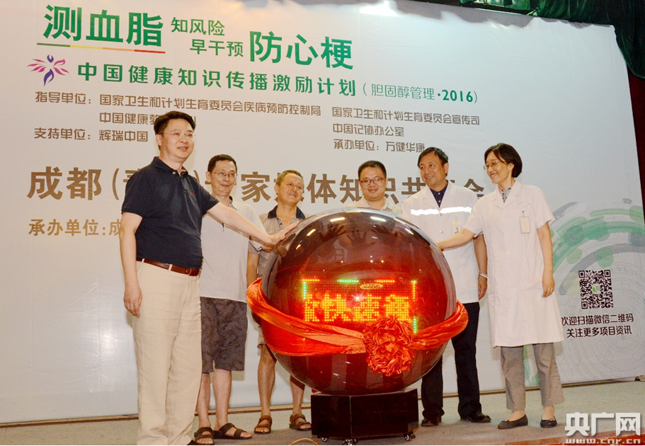 央廣網(wǎng)成都8月24日消息(記者馮會玲)由國家衛(wèi)生計生委和中國記協(xié)聯(lián)合發(fā)起、輝瑞中國支持的“中國健康知識傳播激勵計劃(膽固醇管理?2016)”知識共享會來到成都青羊,本次青羊知識共享會的主題為“測血脂,防心梗,快急救”,由成都市青羊區(qū)人民政府承辦、成都市第三人民醫(yī)院協(xié)辦。這是該主題活動第三次走進成都,以“膽固醇管理”為核心內(nèi)容,呼吁全社會行動起來,管好膽固醇,加強“防、治、救”工作,保護血管健康。