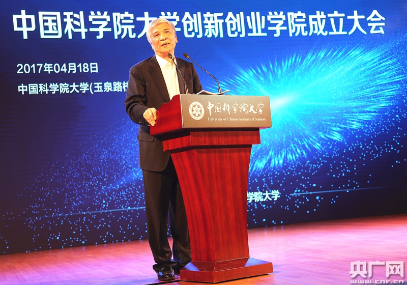 中科院副院長、國科大校長丁仲禮院士在中國科學(xué)院大學(xué)“創(chuàng)新創(chuàng)業(yè)學(xué)院”成立大會上致辭