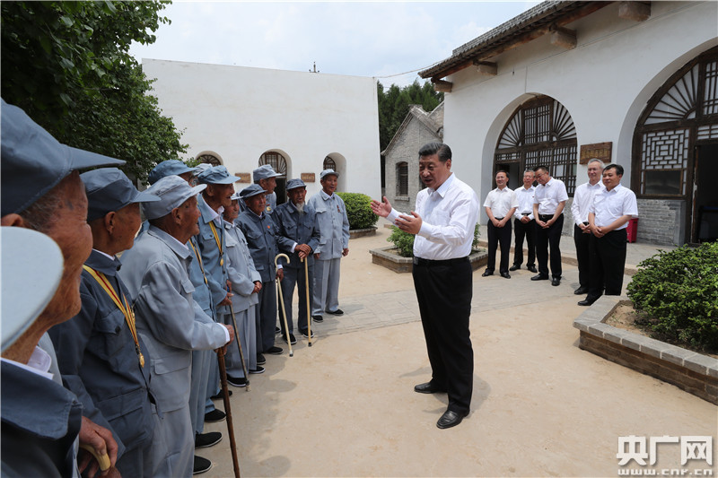 在晉綏軍區(qū)司令部舊址,總書記同當(dāng)年在晉綏邊區(qū)參加對(duì)敵斗爭(zhēng)的老戰(zhàn)士們親切交談。習(xí)近平說,呂梁我是第一次來,我心里一直向往著晉綏根據(jù)地。今天,全黨全國各族人民正在為實(shí)現(xiàn)“兩個(gè)一百年”奮斗目標(biāo)、實(shí)現(xiàn)中華民族偉大復(fù)興而奮斗。我們一定不能忘記為革命成功拋頭顱、灑熱血的前輩們,不能忘記為抵抗日本軍國主義侵略、為建立新中國、為社會(huì)主義革命和建設(shè)作出貢獻(xiàn)的老同志們。
