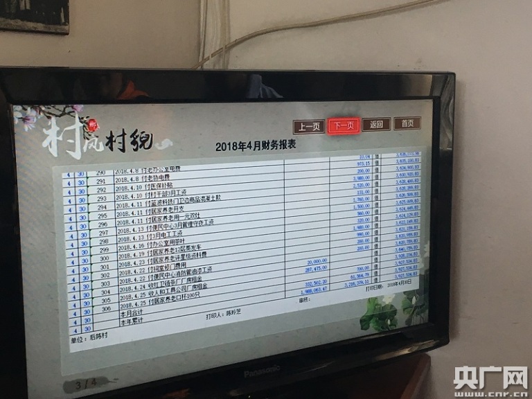 陳玉球告訴記者,現在村里小到買畚箕、蒸飯柜,大到居家養老食堂開支,都公開上墻、一目了然,F在村里有月報,從2004年開始,每戶村民打開電視就能知道村里的財務。