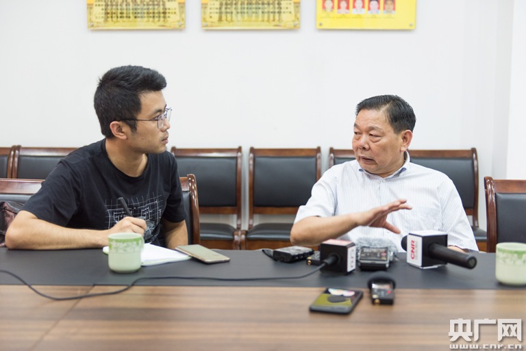 記者采訪紫南村黨委書記潘柱升(央廣網記者 官文清 攝)