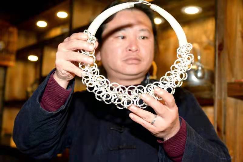 曾經的潘仕學是外出打工大潮中的一員,如今的他,不僅成為了網紅非遺傳承人,還通過新客源、新銷路、新模式帶動銀飾業(yè)不斷發(fā)展壯大,幫助老弱婦孺及貧困村民創(chuàng)業(yè)增收、脫貧致富。這是潘仕學給村民們帶來的希望。