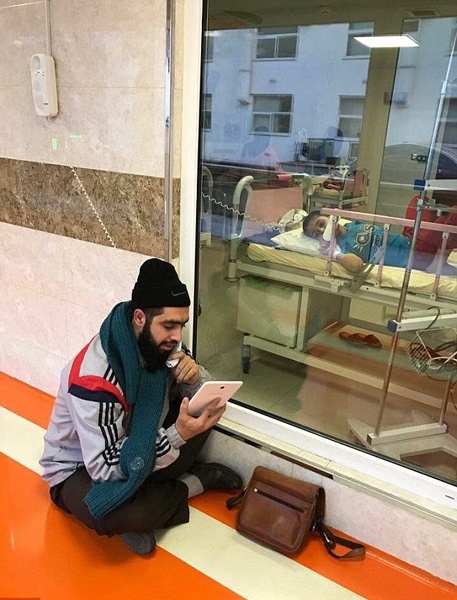 近日,一位伊朗教師因為一張照片在網絡上迅速走紅,并贏得來自全世界的掌聲和贊譽。照片中,一名戴帽子的年輕男子席地而坐,一手拿著平板電腦,一手拿著電話似乎正在讀課文;而在玻璃窗的另一頭,一個小男孩正躺在床上,一邊接著電話,一邊看向窗外的男子。一張薄薄的照片卻承載了厚厚的情誼,濃濃的“師生情”感動了眾多網友們。