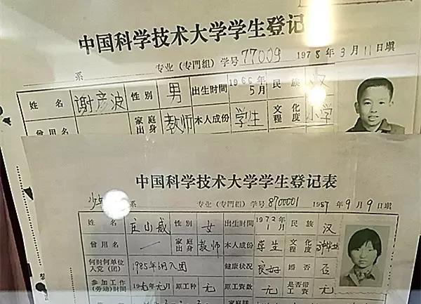 少年班學生登記表(展出于中科大校史館)