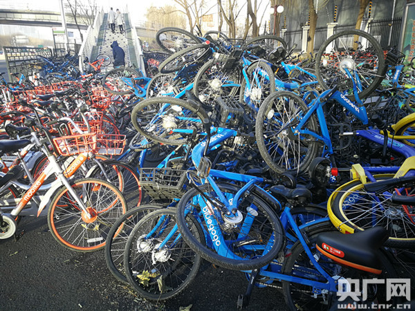 在北京八王墳東公交車站,即北京最大的共享單車“停車場”之一,賣力的吆喝里夾雜著共享單車的清脆鈴聲。每天晚高峰,上千輛共享單車從周邊涌來,依靠交警執勤和調度車不斷清理,才能給開往通州的公交車留一條“出路”。用戶劉先生告訴記者:“這車特別多,很多車就這樣堆著,沒人騎,騎之前還要擦一下。”