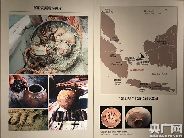 1998年,印度尼西亞的勿里洞島海域,一艘沉沒多年的船舶被打撈出水。令人驚嘆的是,出水的67000件貨物里,竟然有56000件瓷器。從刻有“寶歷二年七月十六日”(公元826年)的瓷碗題記推斷,沉船為公元9世紀上半葉。經過專家學者鑒定,終于確認這是1200年前的阿拉伯帆船“黑石號”,滿載的是來自中國唐朝的貨物。而這56000件瓷器,都來自中國長沙窯。