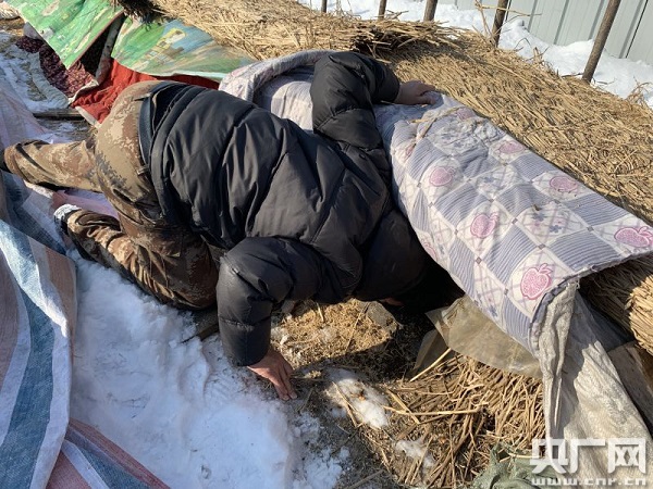 楊立山冬季到養蜂村民家查看蜂箱(中央廣播電視總臺央廣記者 苑競瑋 攝)