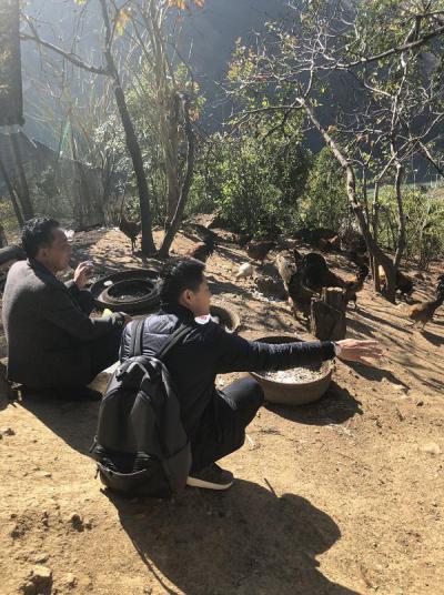 一籌莫展的時候,駐村扶貧工作隊隊長桑娜妞找上門來,想聽聽他的計劃。楊文忠說:“過年后養土雞500只以上,豬三十頭,還有牛。但是現在蓋不起,沒有錢。”