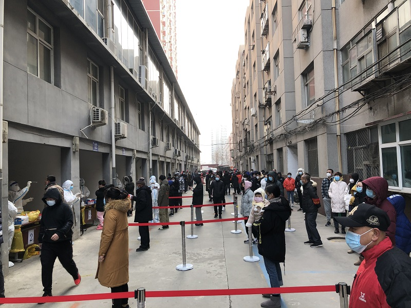 雷妮娜住在石家莊市橋西區紅旗街道的豐河苑社區,社區居民9000多人。1月6日,石家莊市開始進行第一輪全員核酸檢測,雷妮娜所住的小區也迅速開展。雷妮娜回憶說:“剛開始(因為)大家是第一次經歷,有點亂。當時在排隊的時候,就有人主動站出來幫忙維持秩序。我們也想著看看有沒有需要幫忙的。后面社區需要志愿者去做什么工作的時候,就會在群里面發消息,然后我們回應,去簽到就行,(社區)就會給安排一些工作。”