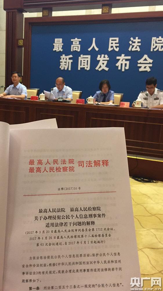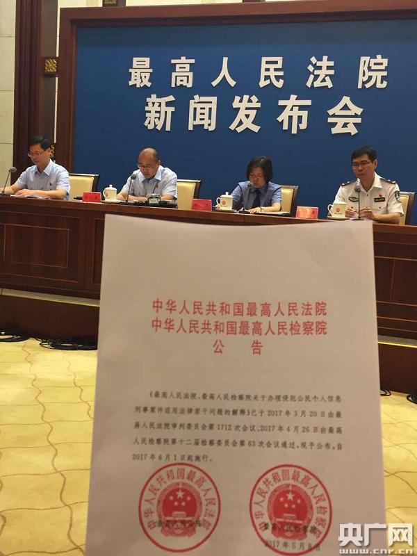 兩高發布司法解釋 嚴格辦理侵犯公民個人信息刑事案件