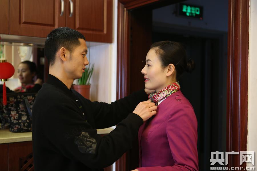 90后最美雙胞胎“辣媽”的第10個春運(央廣網發 李娟攝) 明天就要出乘,今天下午5點,趙玲就需要到車隊組織職工做好出乘學習和接車的準備。穿上制服的那一刻,就要保持得體的妝容,對著,趙玲認真的化妝。臨出門前,趙玲的老公細心、熟練的幫她整理好絲巾。 外面陽光正好,一家四口其樂融融的幸福,也如春日的陽光般和煦。 -