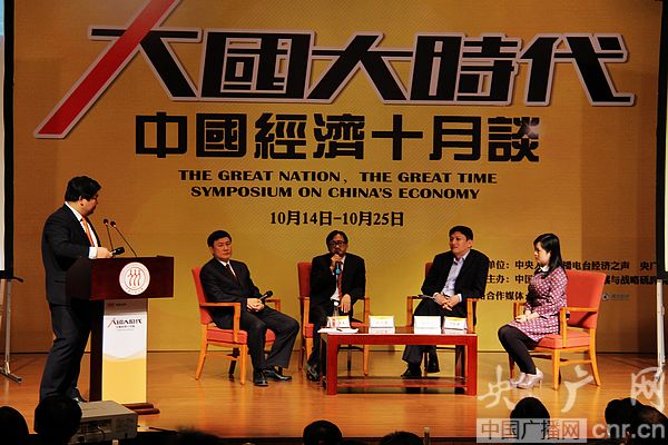 央廣網財經北京10月15日消息 由中央人民廣播電臺經濟之聲、央廣網財經主辦的《大國大時代----中國經濟十月談》系列時事報告會第二場在人民大學舉行。今天的主題是《增長談——大國增長的極限到了嗎?》。人民大學中國經濟改革發展研究院執行院長、經濟學院副院長劉元春,國家發改委學術委員會秘書長張燕生等出席報告會并發表演講。